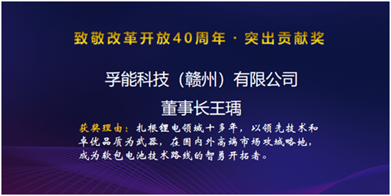 當前,動力電池產業競爭日趨激烈,而業內的企業家們則是支撐行業發展的中堅力量,他們的所思、所想、所言、所行,不僅決定著自身企業的發展,也在業內不斷產生推動效應,影響著行業的進步與前行。“致敬改革開放40周年”獎項在于表彰獲獎者的突出貢獻,感謝他們在過去一年中的探索與堅持。