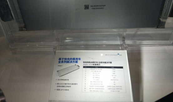 圖為2019上海車展上微宏動力展出的快充純電動乘用車-52Ah VDA產(chǎn)品
