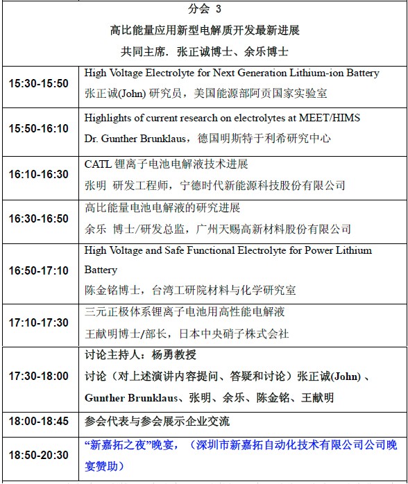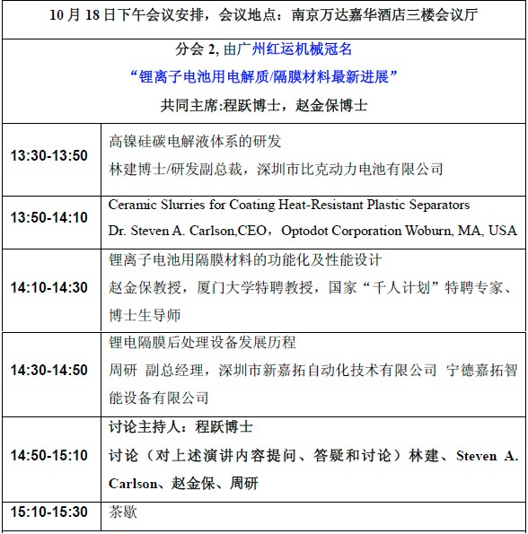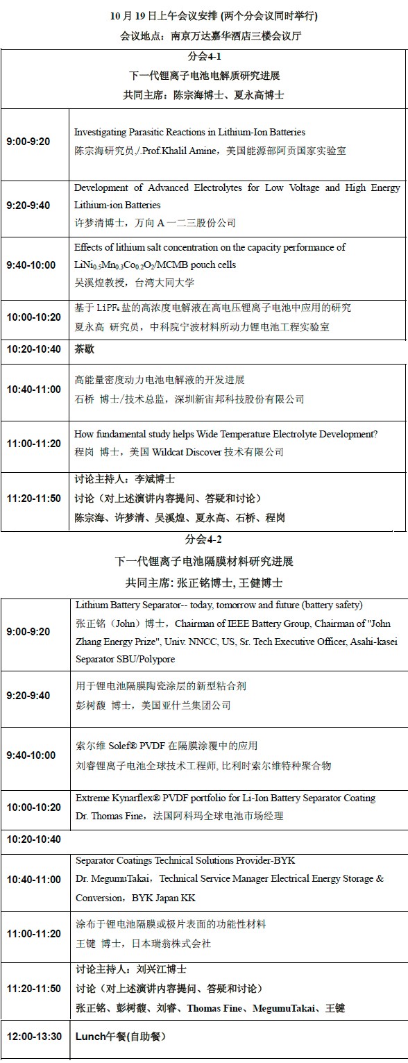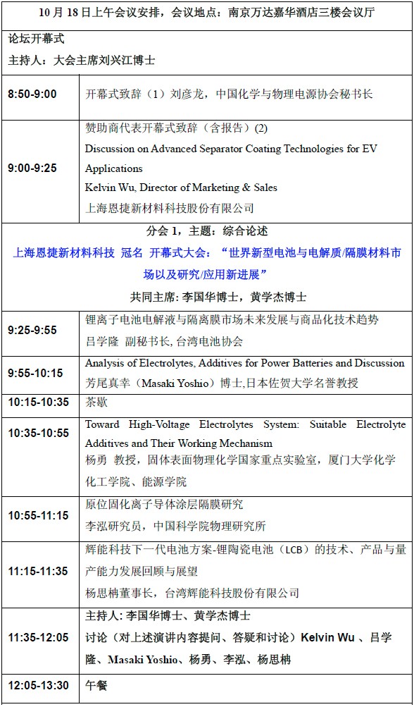 以大會演講方式進(jìn)行,并設(shè)有中英文現(xiàn)場同聲翻譯(第一天大會場、第二天分電解液、隔膜分會場)。
