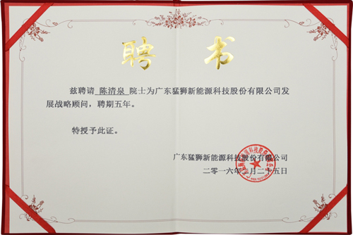 猛獅科技聘請陳清泉院士任發展戰略顧問