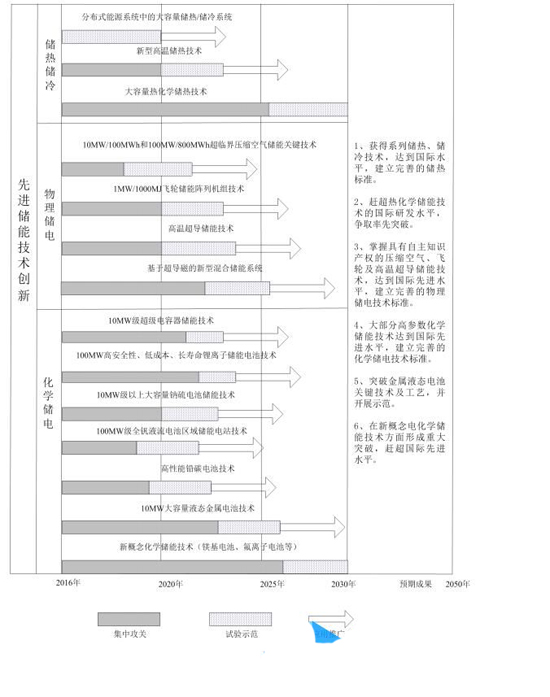 尤為值得注意的是,該《計(jì)劃》列舉了包括“先進(jìn)儲能技術(shù)創(chuàng)新”、“氫能與燃料電池技術(shù)創(chuàng)新”、“能源互聯(lián)網(wǎng)技術(shù)創(chuàng)新”等15項(xiàng)重點(diǎn)任務(wù)。而《路線圖》則明確了上述15項(xiàng)重點(diǎn)任務(wù)的具體戰(zhàn)略方向、創(chuàng)新目標(biāo)及創(chuàng)新行動。以下為先進(jìn)儲能技術(shù)路線圖、戰(zhàn)略方向、創(chuàng)新目標(biāo)及創(chuàng)新行動具體內(nèi)容。