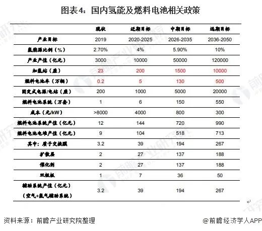 燃料電池產業鏈技術產業化與技術目標不斷細化。2019年6月18日,國家能源局等部委指導下首部《中國氫能源及燃料電池產業白皮書》發布,不僅更加明確燃料電池汽車、加氫站的數量的總量目標,而且對氫能源比例、燃料電池系統產能和相關電堆及零部件產值做出規劃,燃料電池產業發展路徑更為具體和系統。