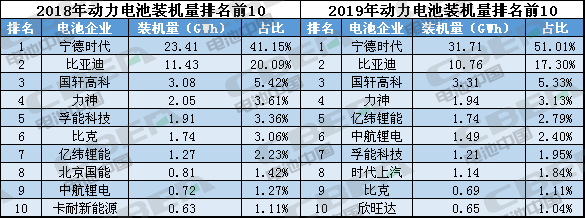 Li+研究│2019年動(dòng)力電池裝機(jī)量TOP10企業(yè) 6增4降