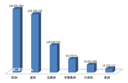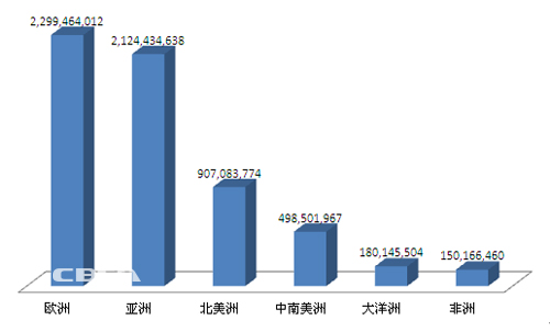 據(jù)中國化學與物理電源行業(yè)協(xié)會發(fā)布的《2013年我國電池產(chǎn)業(yè)出口數(shù)據(jù)》,2013年,我國圓柱堿錳電池出口量為61.59億只,比2012年出口57.29億只的數(shù)據(jù)同比增長 7.5%。2013年圓柱堿錳電池出口額為6.82億元,與2012年出口額6.42億美元相比,同比增長 6.2%。其中,出口歐洲的金額同比增長7.7%,出口亞洲的金額同比增長5.5%,出口北美的金額同比增長0.5%。