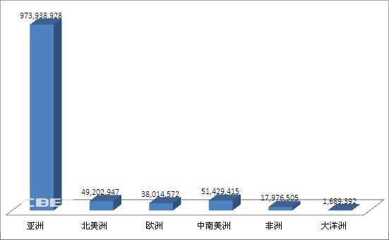 據(jù)中國化學(xué)與物理電源行業(yè)協(xié)會發(fā)布的《2013年我國電池產(chǎn)業(yè)出口數(shù)據(jù)》,2013年我國鋰離子電池出口量為11.32億只,2012年出口量為11.73億只,同比減少3.5%。2013年我國鋰離子電池出口額為48億美元,2012年出口額為44.64億美元,同比增長7.5%。其中,出口亞洲金額同比增長9%,出口北美金額同比增長5.9%,出口歐洲金額同比增長6.3%,出口中南美洲金額同比減少14.6%。