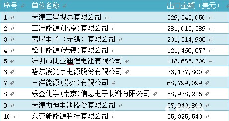 (2013年我國鋰離子電池前十大出口企業(yè))