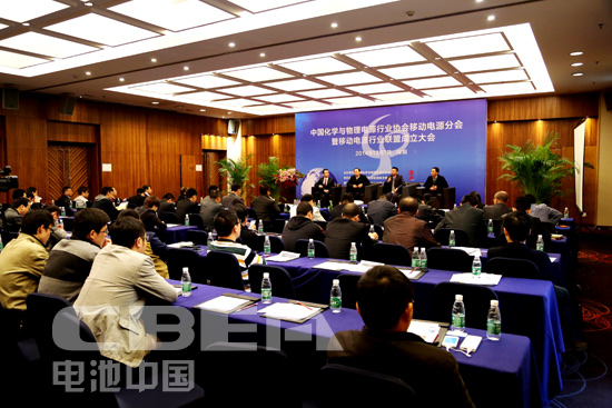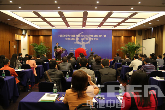 圖為中國化學與物理電源行業(yè)協會移動電源分會暨移動電源行業(yè)聯盟成立大會現場