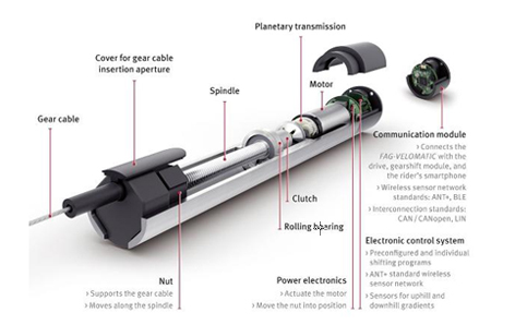 對(duì)于經(jīng)常進(jìn)行自行車(chē)騎行運(yùn)動(dòng)的人來(lái)說(shuō),變速器并不陌生。在不同的路況及體力情況下,調(diào)節(jié)自行車(chē)的檔位可以讓騎行者更為輕松舒適。這款FAG VELOMATIC自動(dòng)變速執(zhí)行器的特點(diǎn)在于完全不用騎行人手動(dòng)操控,它可以根據(jù)騎行節(jié)奏、力度、車(chē)輪轉(zhuǎn)速和坡度等計(jì)算自行車(chē)和電動(dòng)自行車(chē)上的最佳輪參數(shù)和最佳換檔點(diǎn),然后快速、精準(zhǔn)、順暢地調(diào)節(jié)外變速器或者內(nèi)變速花鼓,從而讓騎行者得到更為輕松的騎行體驗(yàn)。這款自動(dòng)變速執(zhí)行器設(shè)計(jì)小巧輕便,可以兼容所有類(lèi)型的自行車(chē)和驅(qū)動(dòng)系統(tǒng),在不改變車(chē)身外觀的情況下,使自行車(chē)時(shí)刻處于最佳檔位。