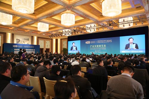 圖為陳清泰在中國電動汽車百人會2015年度論壇上講話