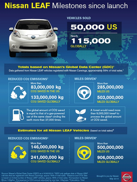 整體而言,日產聆風在美國的累計銷量已經達到了50000臺,上周,達拉斯居民Todd和Lisa Bolt成為了美國第五萬名聆風車主。全球市場銷售方面,日產汽車公司稱,自聆風上市以來,已經賣出了近115000臺,成為世界最暢銷電動汽車。