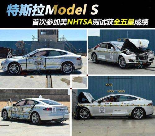 特斯拉在NHTSA(美國高速公路安全協會)進行了數次碰撞測試,包括100%正面碰撞、27°角側面碰撞、75°角側面柱碰和翻滾碰撞、車頂強度等碰撞測試。在100%正面碰撞測試中,由于特斯拉汽車“發動機艙”內不需要安裝動力總成,有足夠的空間來安排提高車身強度的結構,可以更好地保護乘員艙及車身下方的電池組。由于電池分布在車底,電機位于后車橋,前部沒有動力總成,整車的重量基本都集中在車輛底部和尾部并且重心較低,所以在正面碰撞測試中,車尾并沒有出現大幅度抬起的情況。