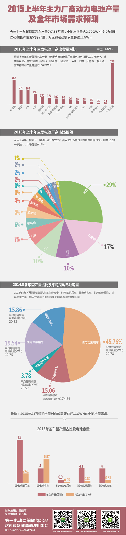 [摘要]今年上半年新能源汽車產量為7.85萬輛,電池出貨量達2.72GWh;按今年預計25萬輛的新能源汽車產量,對應到電池需求量將達11GWh。
