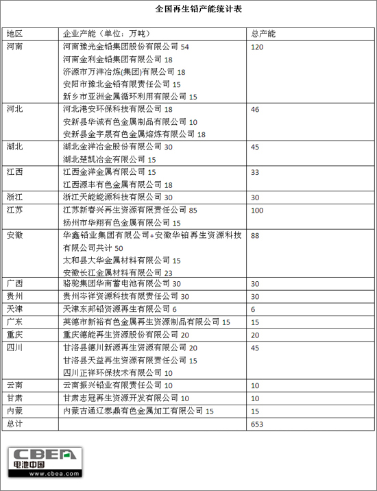 據(jù)上述企業(yè)統(tǒng)計(jì),目前我國(guó)廢鉛酸蓄電池的資源量只有340萬噸左右,與600多萬噸的產(chǎn)能相比,目前再生鉛企業(yè)的產(chǎn)能已過剩。