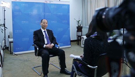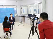 攝像師拍攝超威集團市場部總監楊享川接受記者采訪畫面